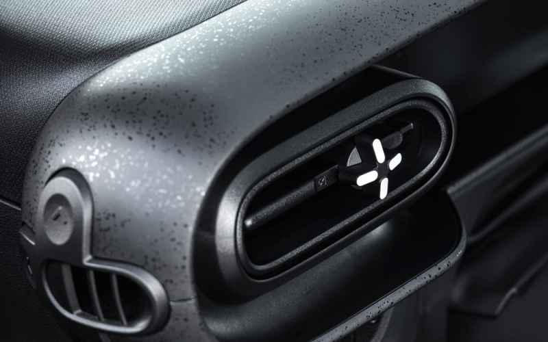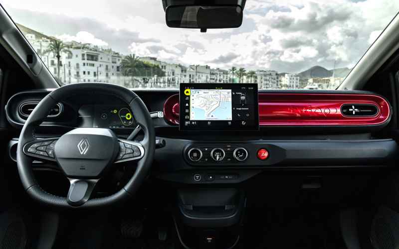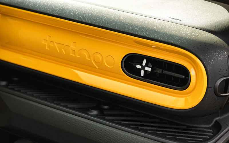 Anche all’interno arriva lo stile ribelle firmato “Twingo” che porta con sé alcuni temi della vettura originale, come il tastone rosso al centro plancia per le frecce di emergenza o la colorazione delle rifiniture della plancia in tinta con la vettura.