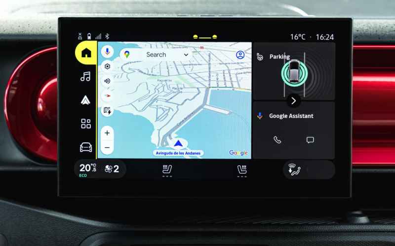 La versione “lusso” di Renault Twingo E-Tech Electric, denominata Techno, costa 21.100 Euro e include anche il climatizzatore automatico, la telecamera di parcheggio posteriore, il sistema OpenR link con Google integrato e due ADAS (Advanced Driving Assistance Systems) per la sicurezza di marcia quali il cruise control adattivo, che mantiene la distanza di sicurezza con il veicolo che precede e il sistema per il mantenimento della corsia, che tiene la vettura nella propria corsia durante la marcia, correggendo lo sterzo.