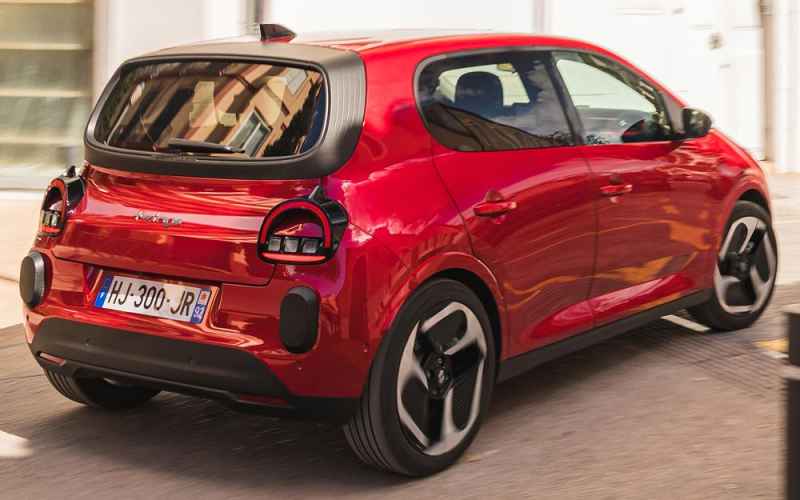 Tre Quarti Posteriore della Renault Twingo E-Tech electric 2026 Color Rouge Absolu