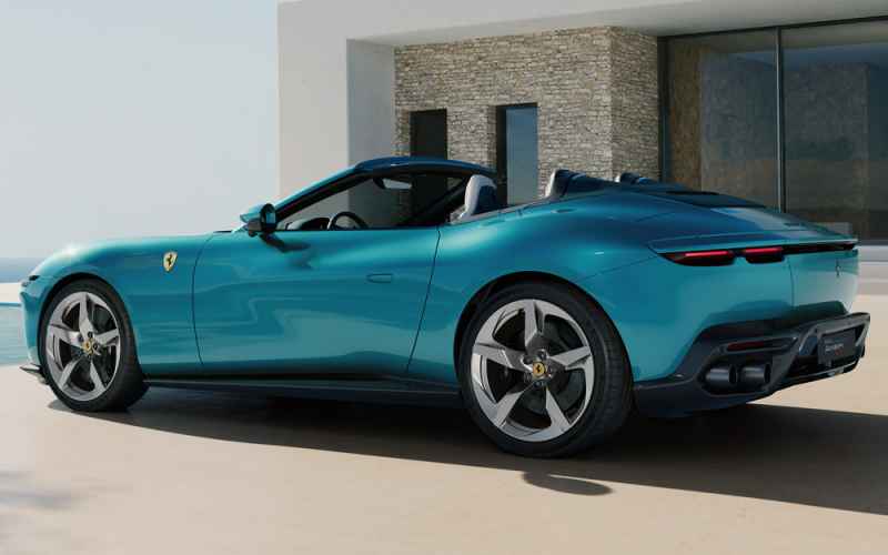 Tre Quarti Posteriore della Ferrari Amalfi Spider Azzurra