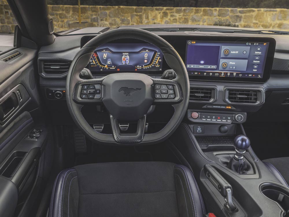 L’abitacolo della nuova Ford Mustang è prestigioso, molto accogliente. Denota un carattere moderno e un design di ispirazione aeronautica.
